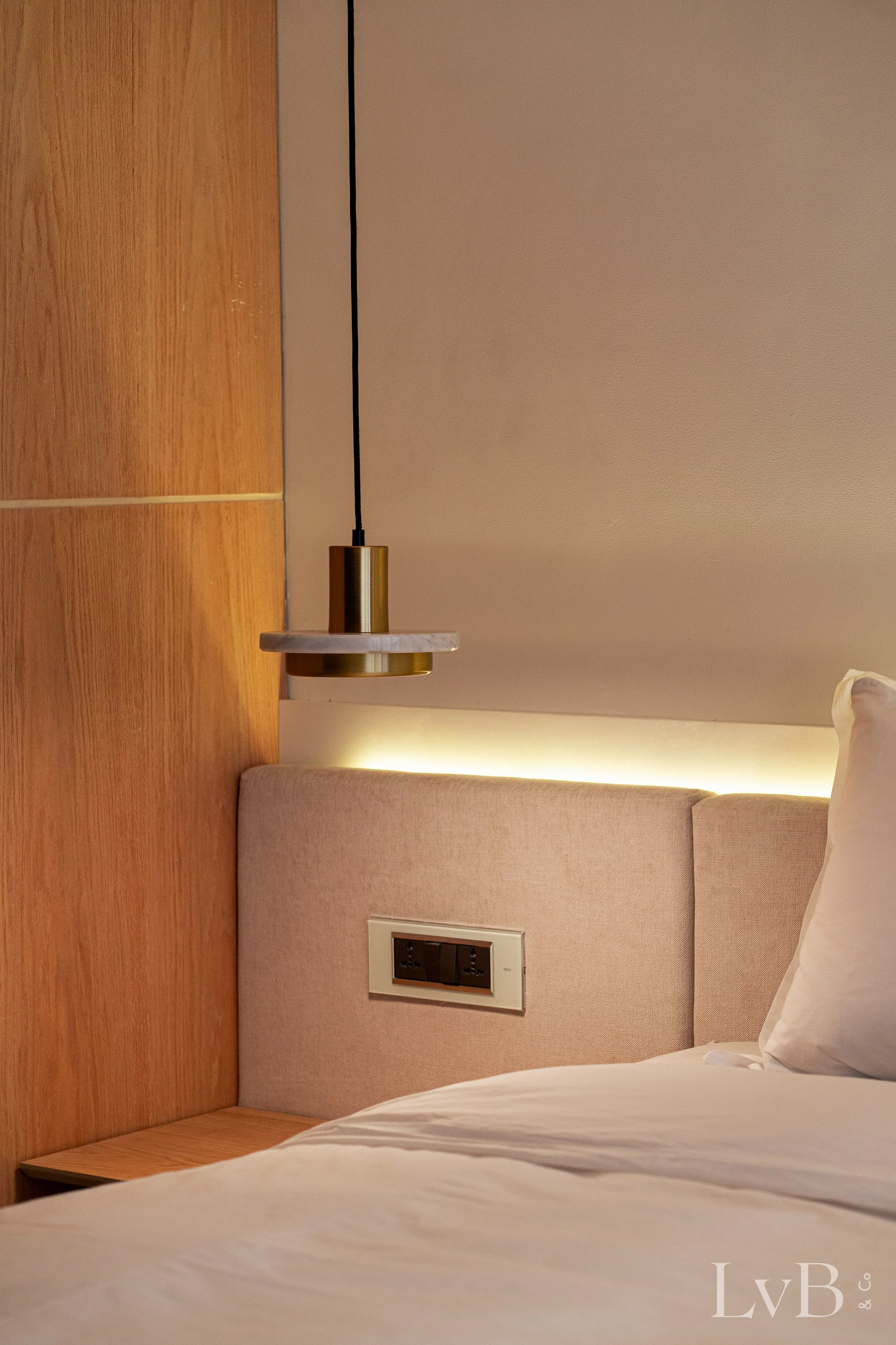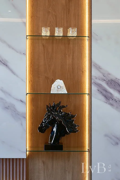 Un projet à caractère unique et doté d’une touche d’originalité. Les revêtements muraux en placage de bois, le travail à la main pour créer des motifs zigzags sur un mur de 12 m de long, le choix des couleurs, la richesse des textures, le mobilier sur mesure, tout a été conçu de sorte à donner à cet espace une harmonie et un rendu séduisant.